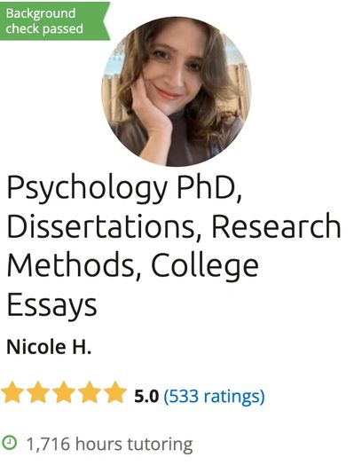 Hi! I'm Dr. Nicole. I teach dissertation-level research and writing to graduate students. With a track record of successfully guiding numerous psychology graduate students to earning their PhDs or PsyDs, I bring a wealth of expertise to the table. My experience ensures that I can provide you with the same level of coaching you would receive if you could schedule one-on-one instructional hours with your academic mentor, chair, or professor. Whether you're seeking guidance, support, or expert advice, I offer online sessions, as well as offline dissertation editing and proofreading services. Contact me today to learn more about how my tutoring services can help you achieve your academic goals